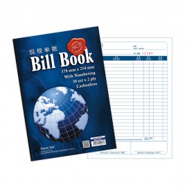 Ref No. : SBS 0134 Product Code: 9555510101347 Size: 131mm x 192mm Quality: 55gsm Description: 40 sets x 2 ply NCR Bill Book (with numbering) Quantity in Carton: 10cps x 32pkt..