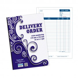 Ref No. : SBS 0263 Product Code : 9555510102634 Size : 178 mm x 254 mm Quality : 55 gsm Description : 25 set x 3 ply NCR Delivery Order (with numbering) Quantity In Carton : 10cps x 20pkt..