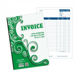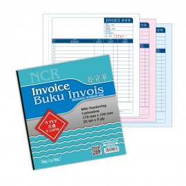 Ref No. : SBS 0032 Product Code : 9555510100326 Size : 178 mm x 254 mm Quality : 50 gsm Description : 25 set x 3 ply NCR Invoice (with numbering) Quantity In Carton : 10cps x 20pkt..